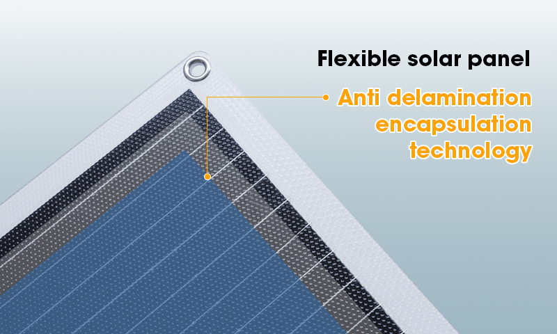 Uses advanced polymer substrates, offering high flexibility and bending capability, up to 30% maximum, while also providing vibration and shock resistance.This makes it perfect for any curved, uneven, or irregular application surfaces.It protects the internal solar cells while allowing easy packing, transport, storage, and rapid deployment.